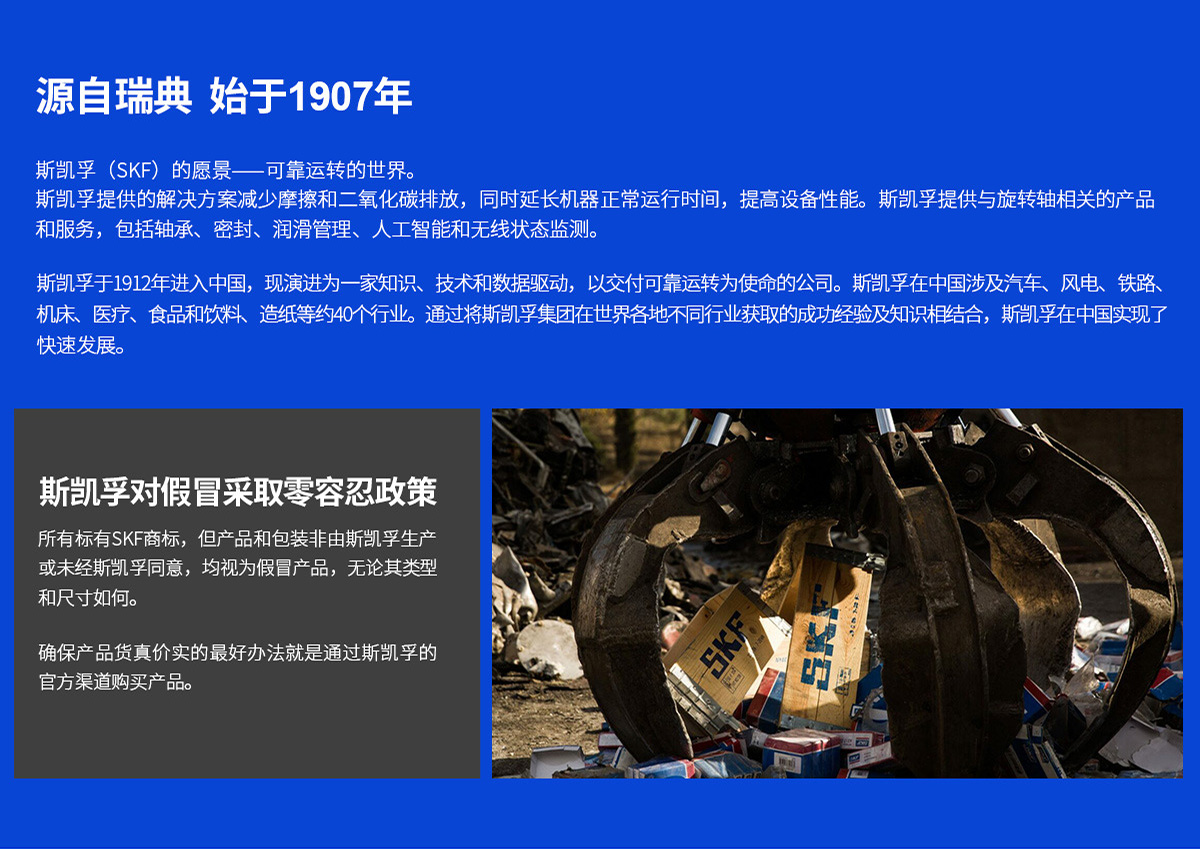 本公司以世界先進工業應用方案的本地化能力,助力客戶成長。全面提供SKF 五大平臺產品及一站式的服務,主要經營SKF 軸承,SKF 油封和襯套,SKF 安裝拆卸工具和潤滑產品,SKF 集中潤滑系統,SKF 直線軸承和機電一體化解決方案,并提供技術支持、產品技術咨詢、工廠設備優化等一站式的服務。